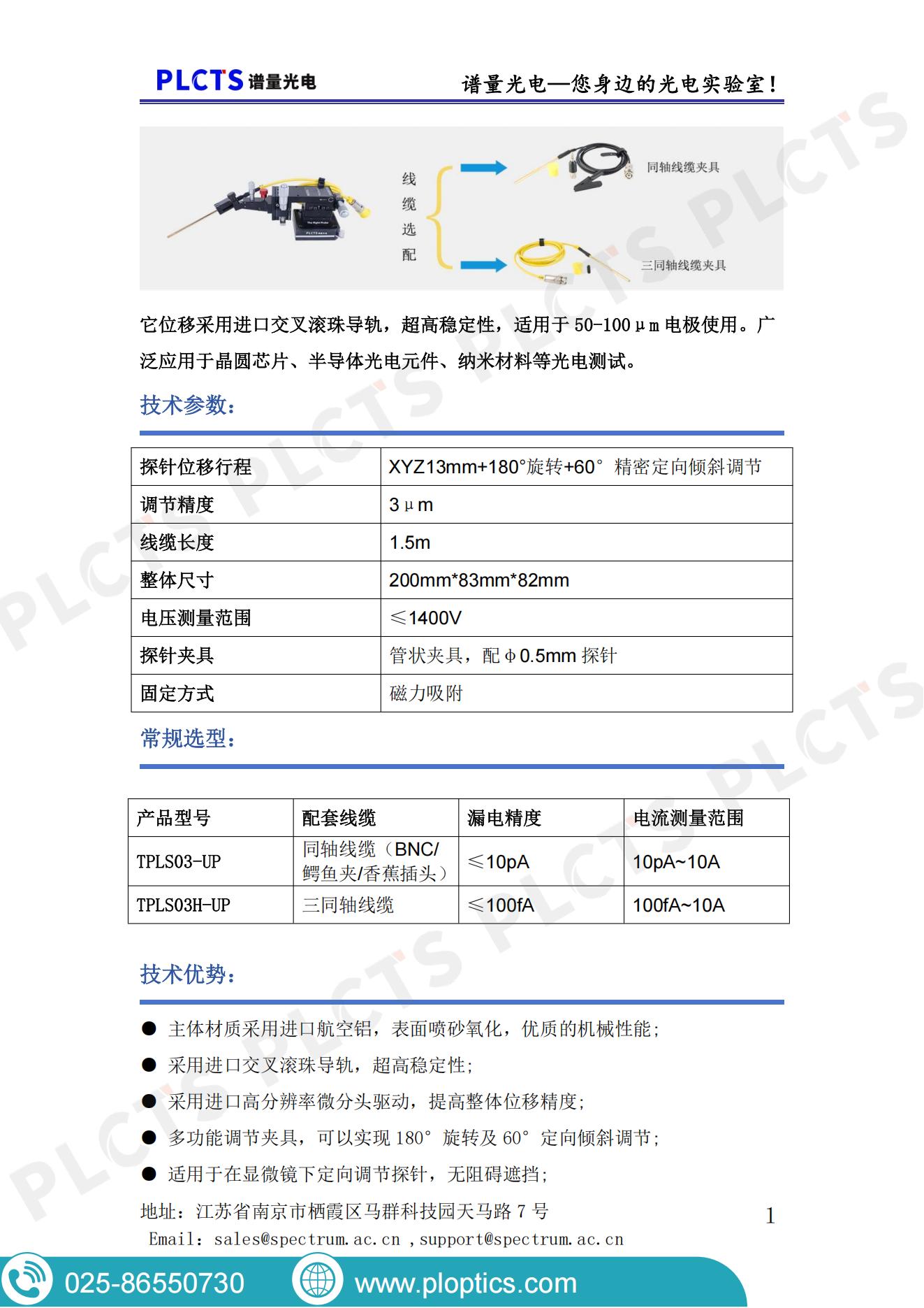 谱量光电提供通用型探针座(TPLS系列)产品手册下载,涵盖10μm至0.5μm多种位移精度,适用于半导体测试、材料科学等精密探针应用。