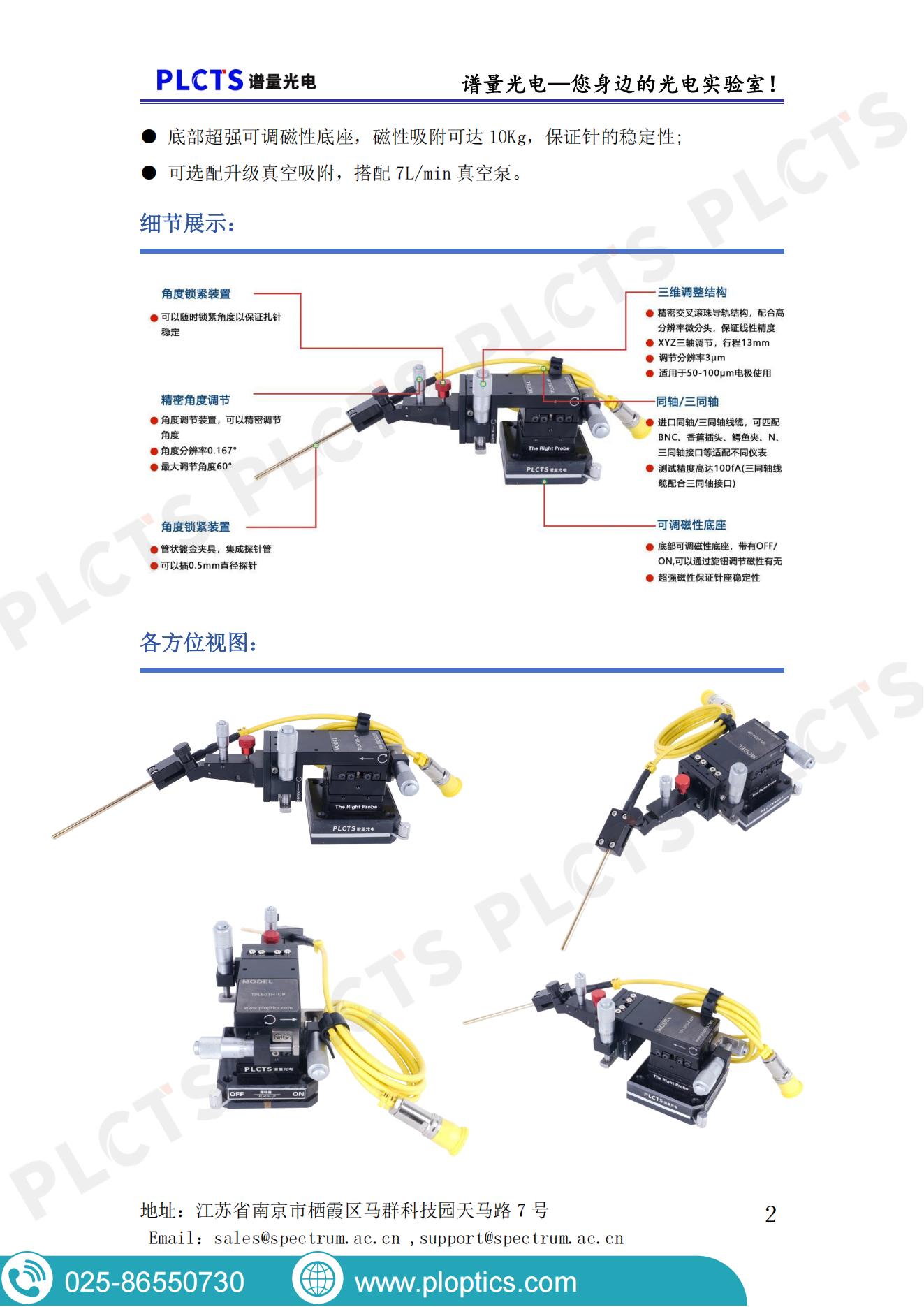 此处为通用型3μm探针座彩页示例,其他位移精度针座彩页,请查阅下方表格
