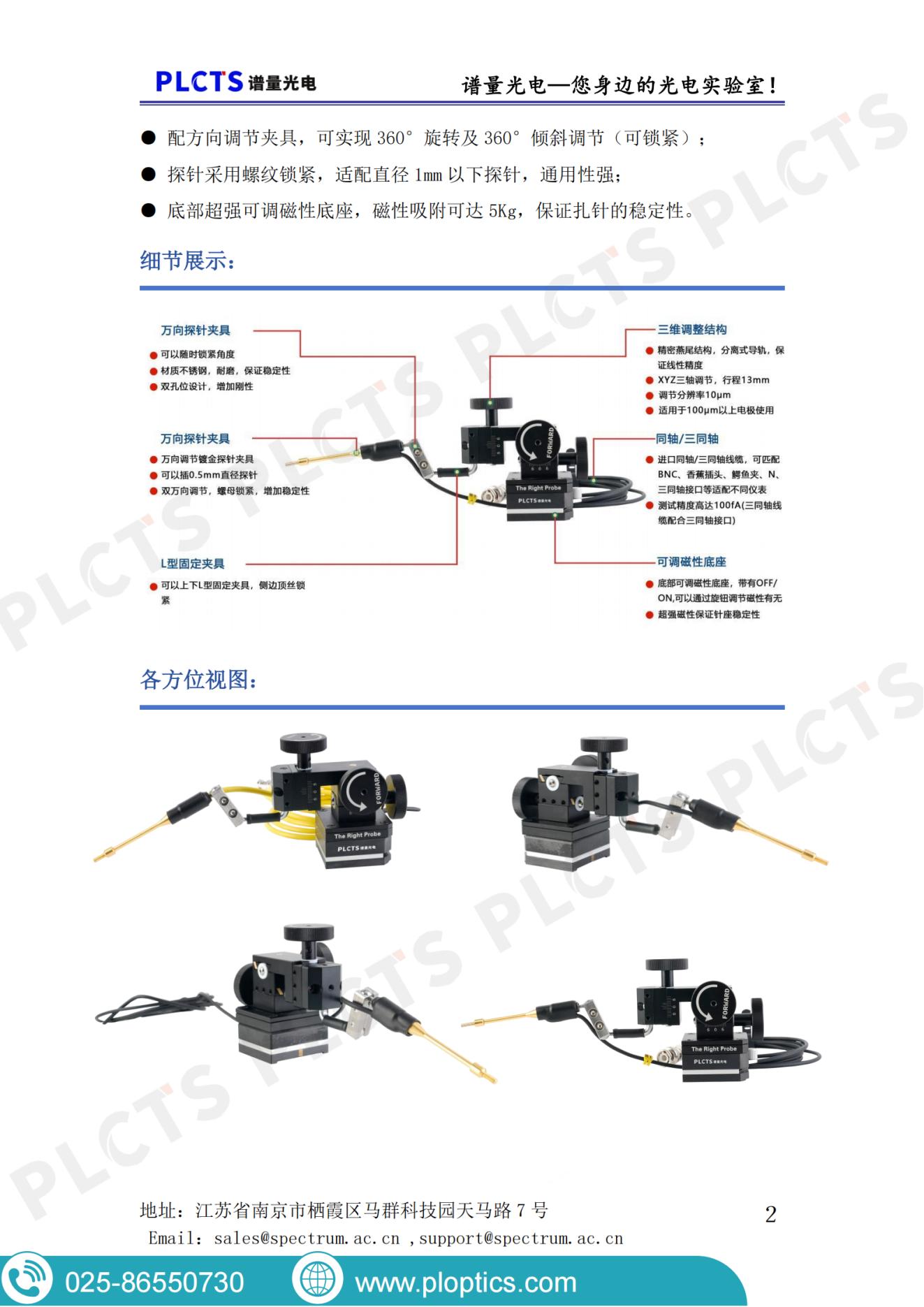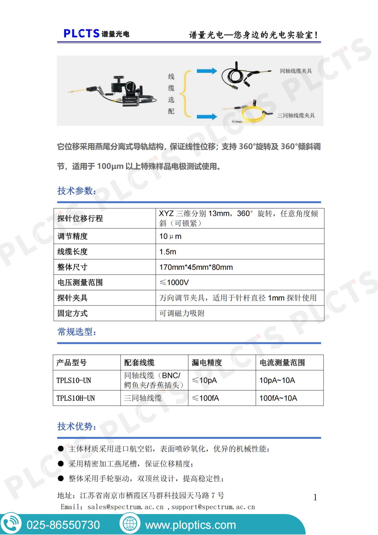 谱量光电提供万向型探针座(TPLS-UN系列)产品手册下载,涵盖10μm和5μm位移精度,适用于半导体、材料科学等精密电气/光学测试。