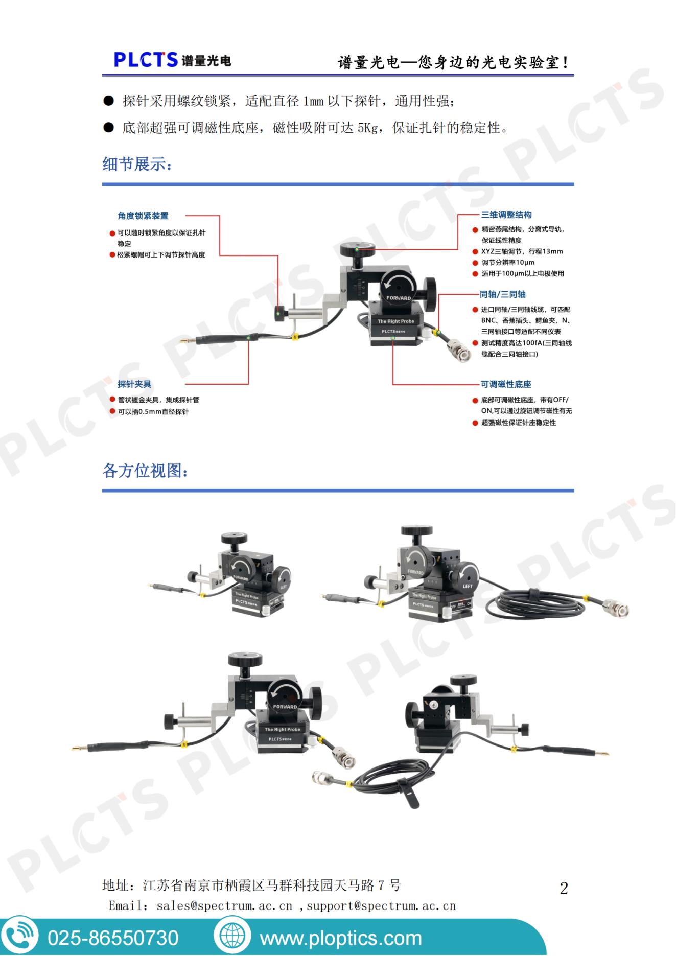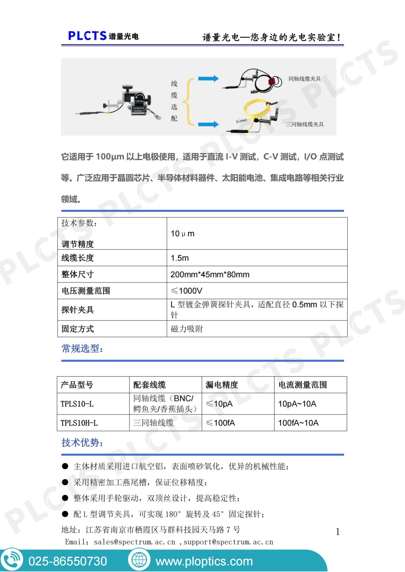 谱量光电提供L型探针座(TPLS10-L系列)产品手册下载,具有10μm位移精度,适用于半导体测试、材料表征等精密探针台应用。