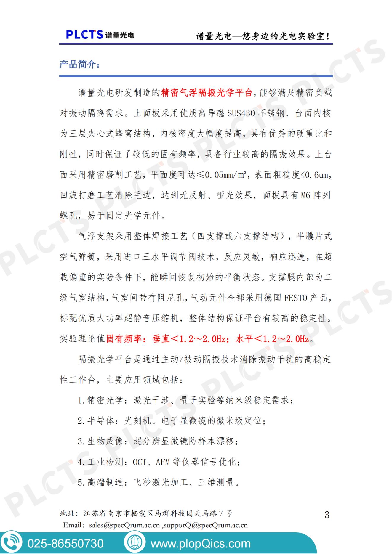 谱量光电提供精密气浮隔振光学平台(PLGZQ系列)产品手册下载,支持尺寸、异形、非磁性定制,为高精度光学实验提供稳定基座。