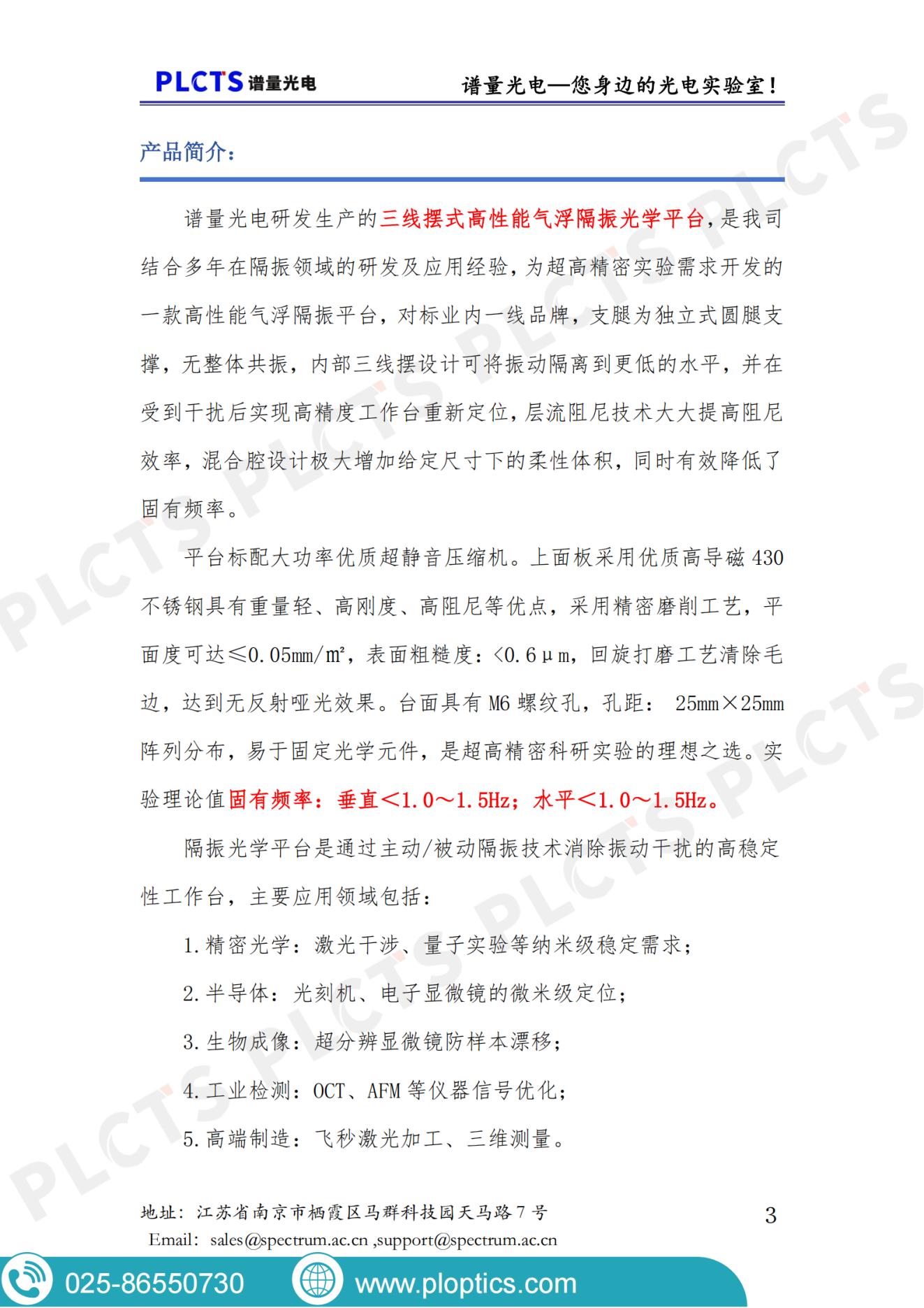谱量光电提供三线摆式高性能气浮隔振光学平台(PLGQS系列)产品手册下载,支持尺寸、异形、非磁性定制,为精密光学实验提供稳定基座。