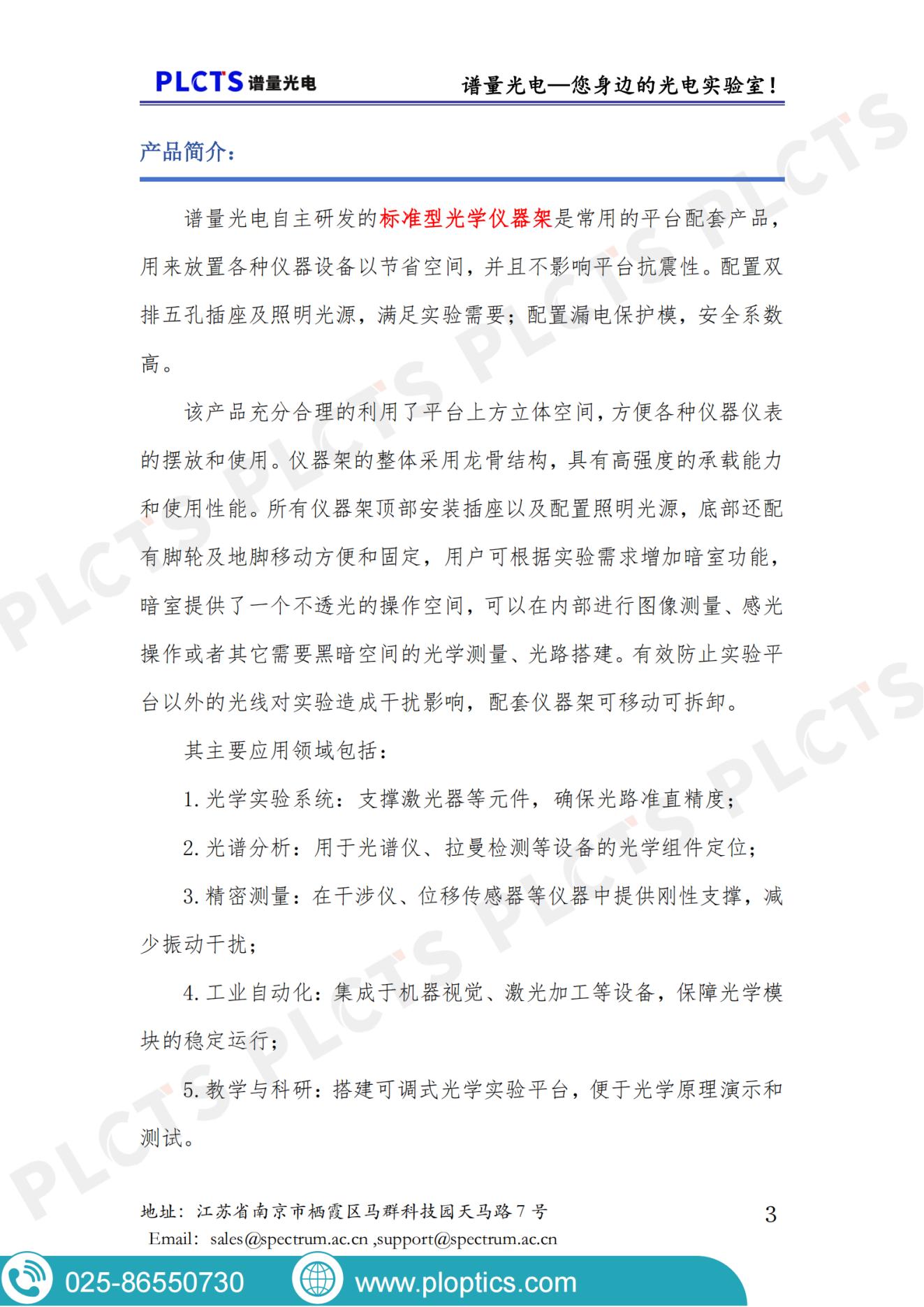 谱量光电提供标准型光学仪器架(PLYQJ系列)产品手册下载,可搭配光学隔振平台及遮光帘,为精密光学实验提供稳定支撑。