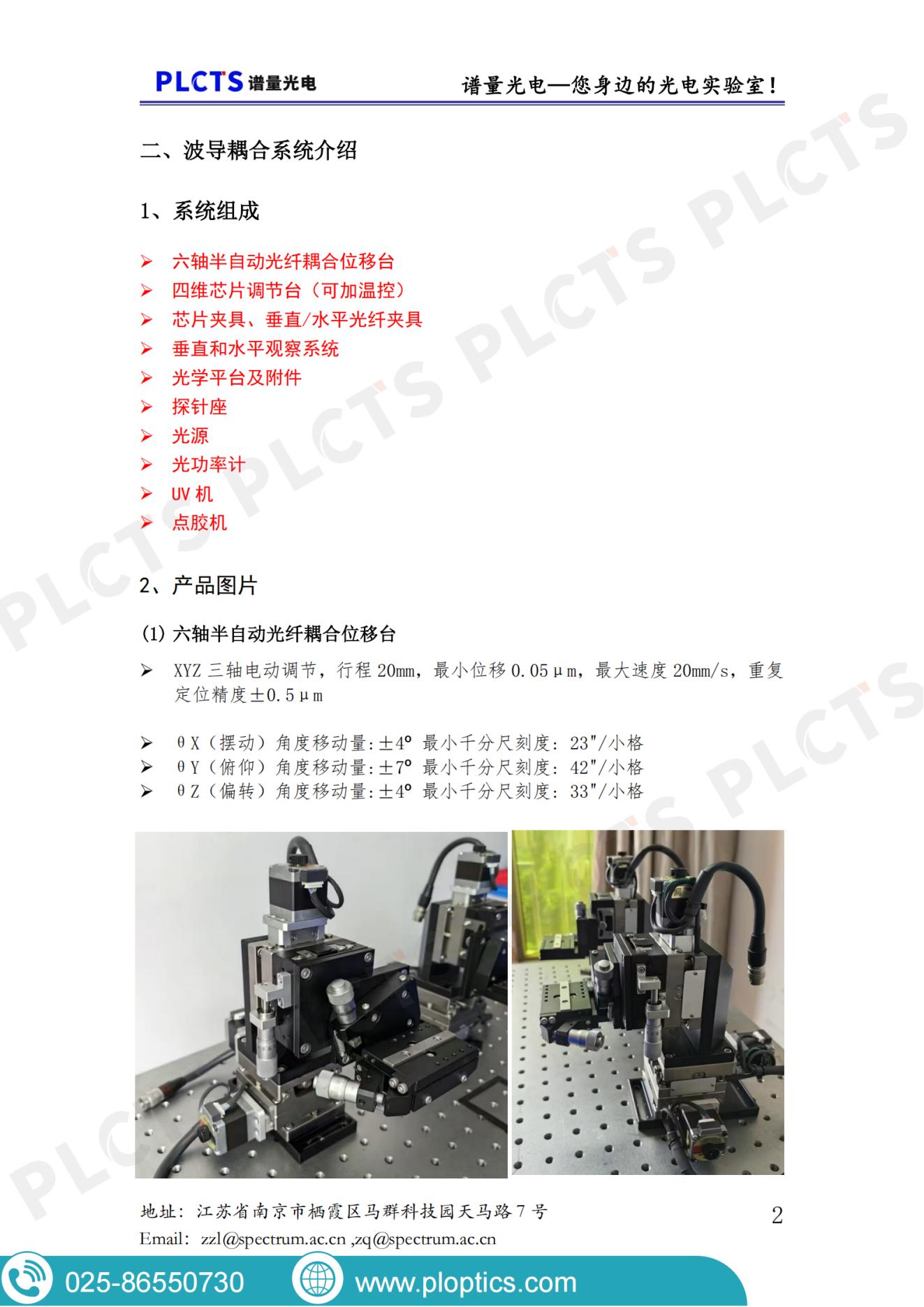 谱量光电提供高精密半自动波导耦合平台(PWS-10E系列)产品手册下载,具有六轴耦合台及XYZ电调功能,实现高精度波导对准。