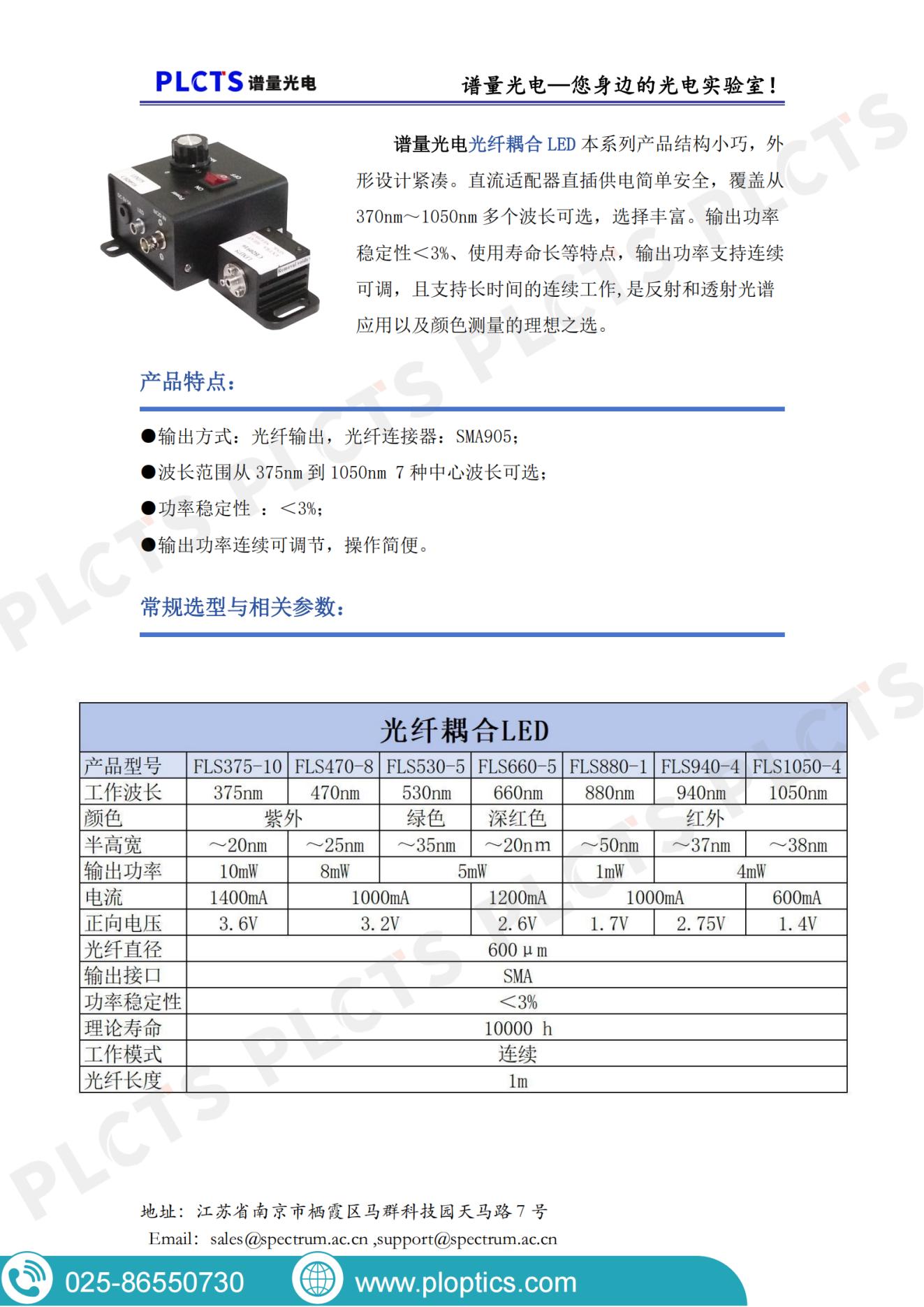谱量光电提供光纤耦合LED产品手册下载,涵盖多种波长和功率型号彩页,为科研教学及工业光纤系统提供稳定光源。