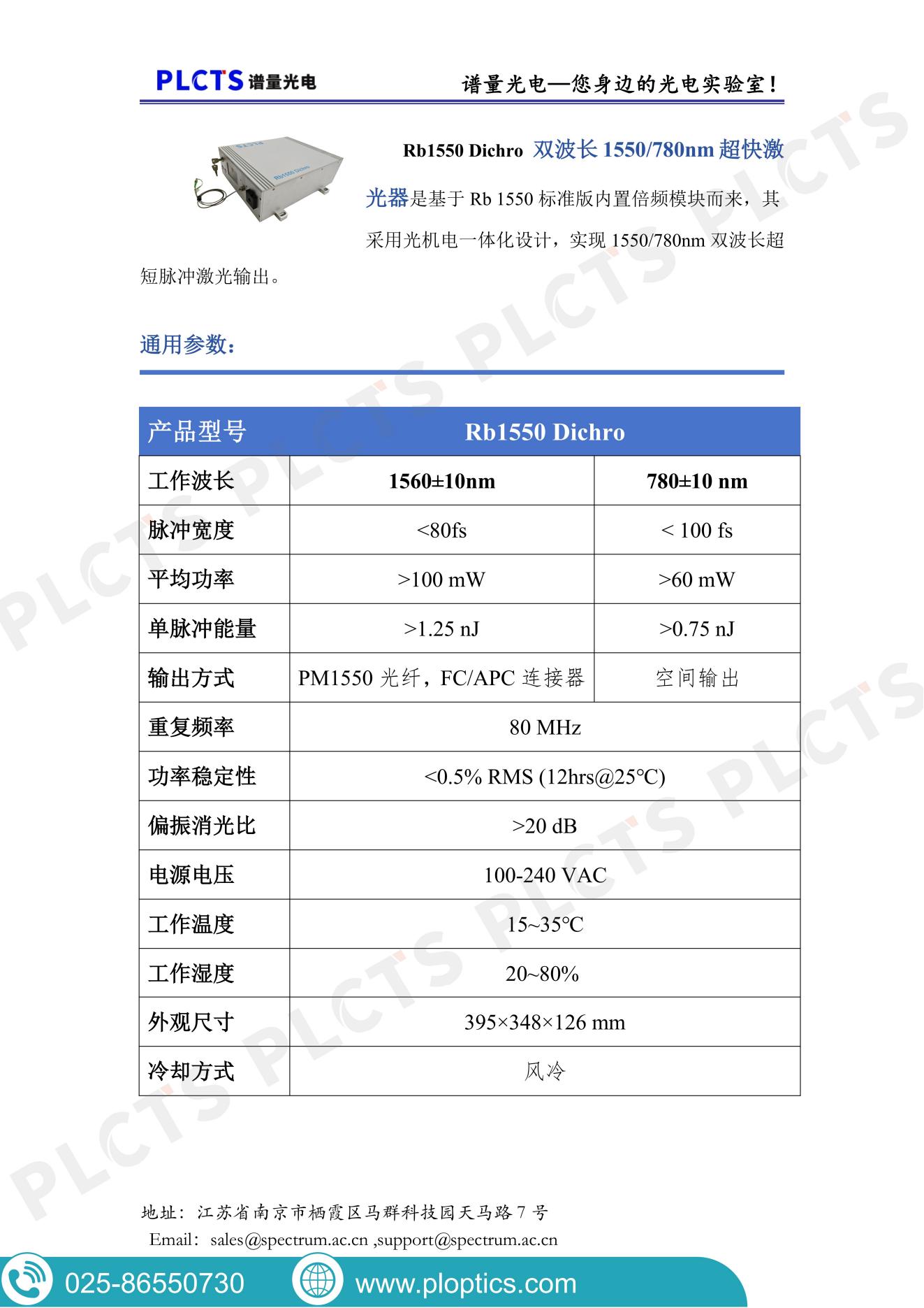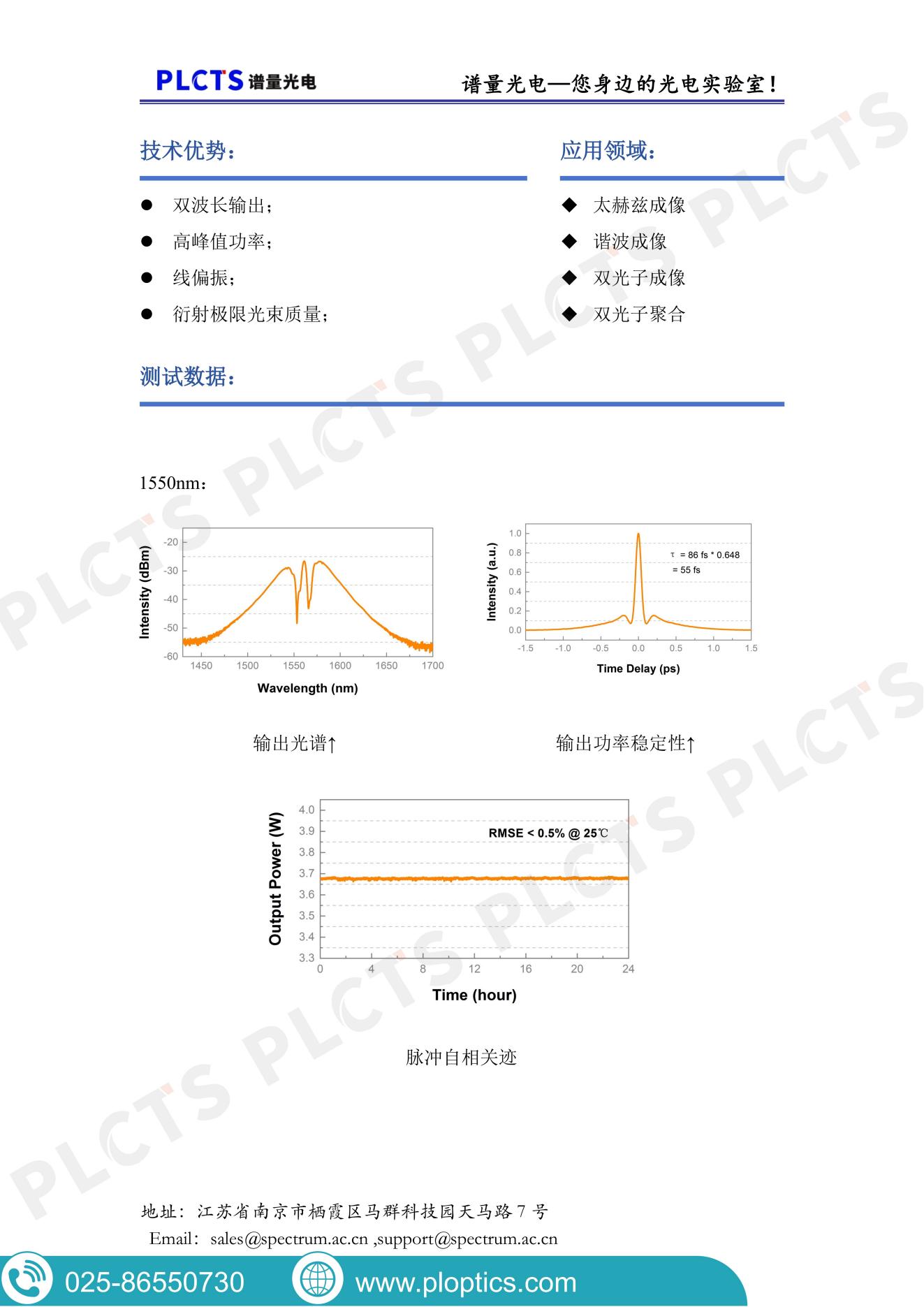 谱量光电提供双波长1550/780nm超快激光器产品手册预览或下载