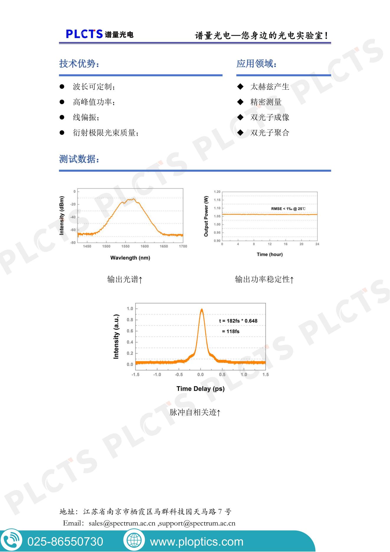 谱量光电提供1.5μm高功率飞秒激光器产品手册预览或下载