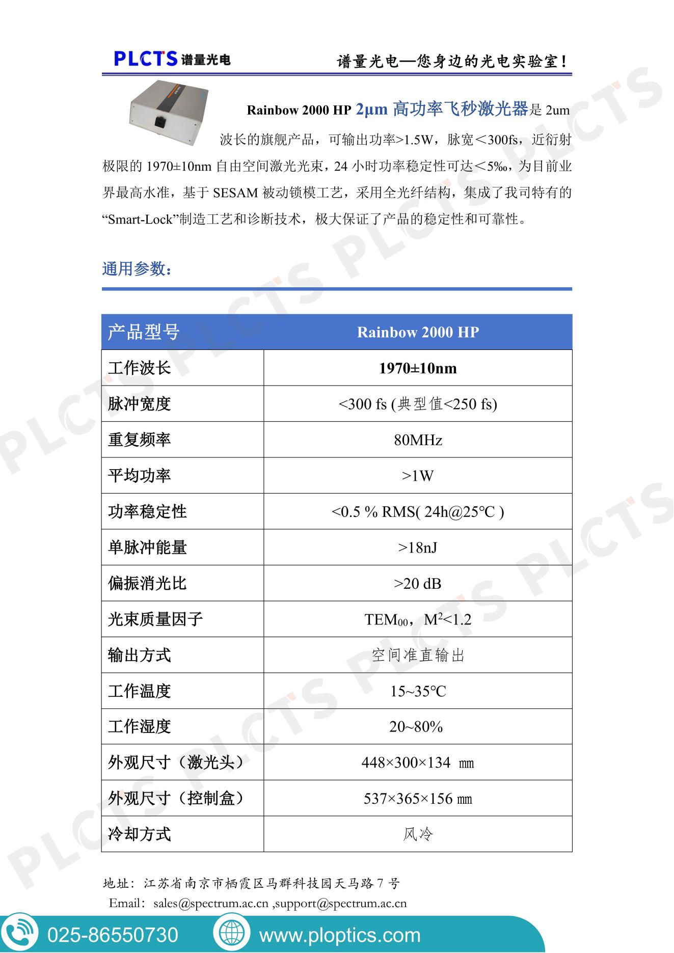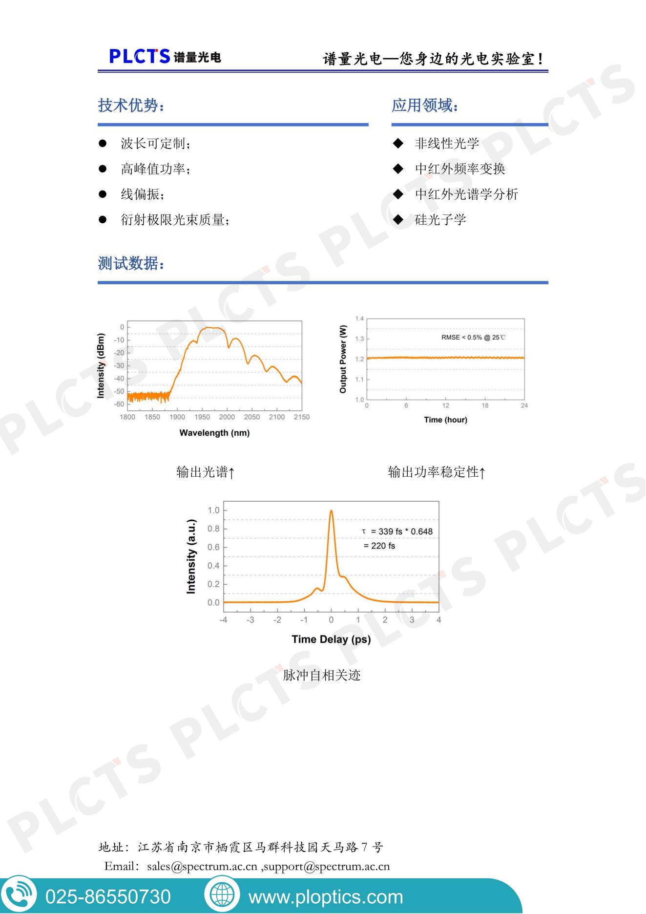 谱量光电提供2μm高功率飞秒激光器产品手册预览或下载