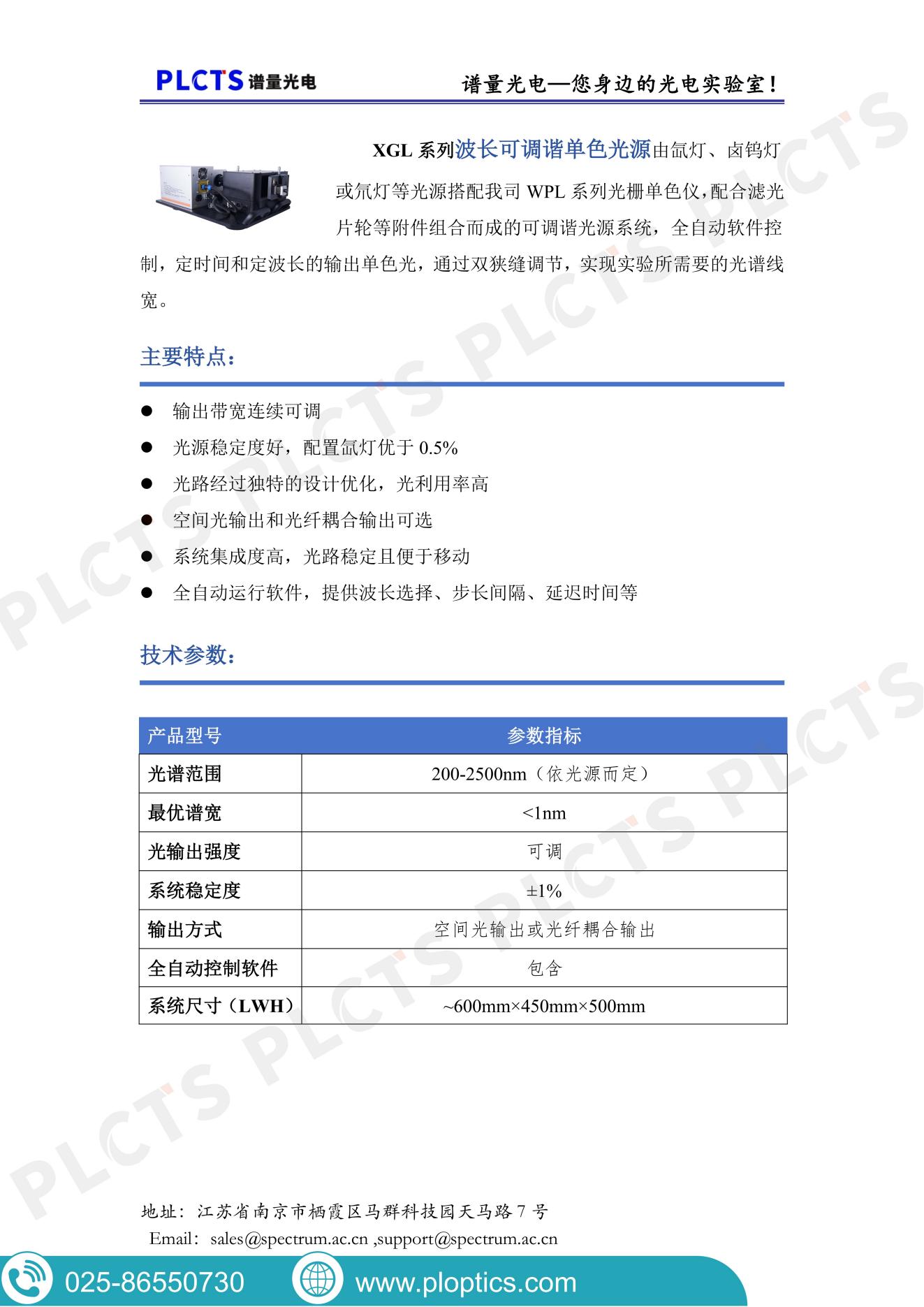 谱量光电XGL系列波长可调谐单色光源,输出波长范围宽,光谱纯净度高,适用于光谱学、材料研究及光电检测实验。谱量光电提供产品手册预览或下载。