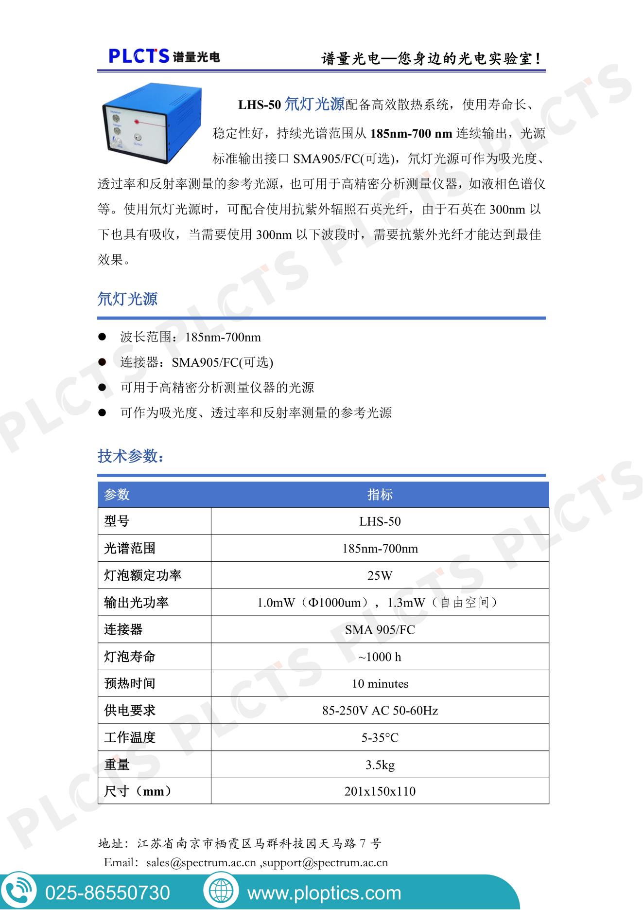 谱量光电LT-50氘灯光源,覆盖185-700nm紫外至可见光谱,输出稳定,适用于光谱分析、材料检测与科研实验。提供氘灯光源的产品手册,您可下载了解参数详情。