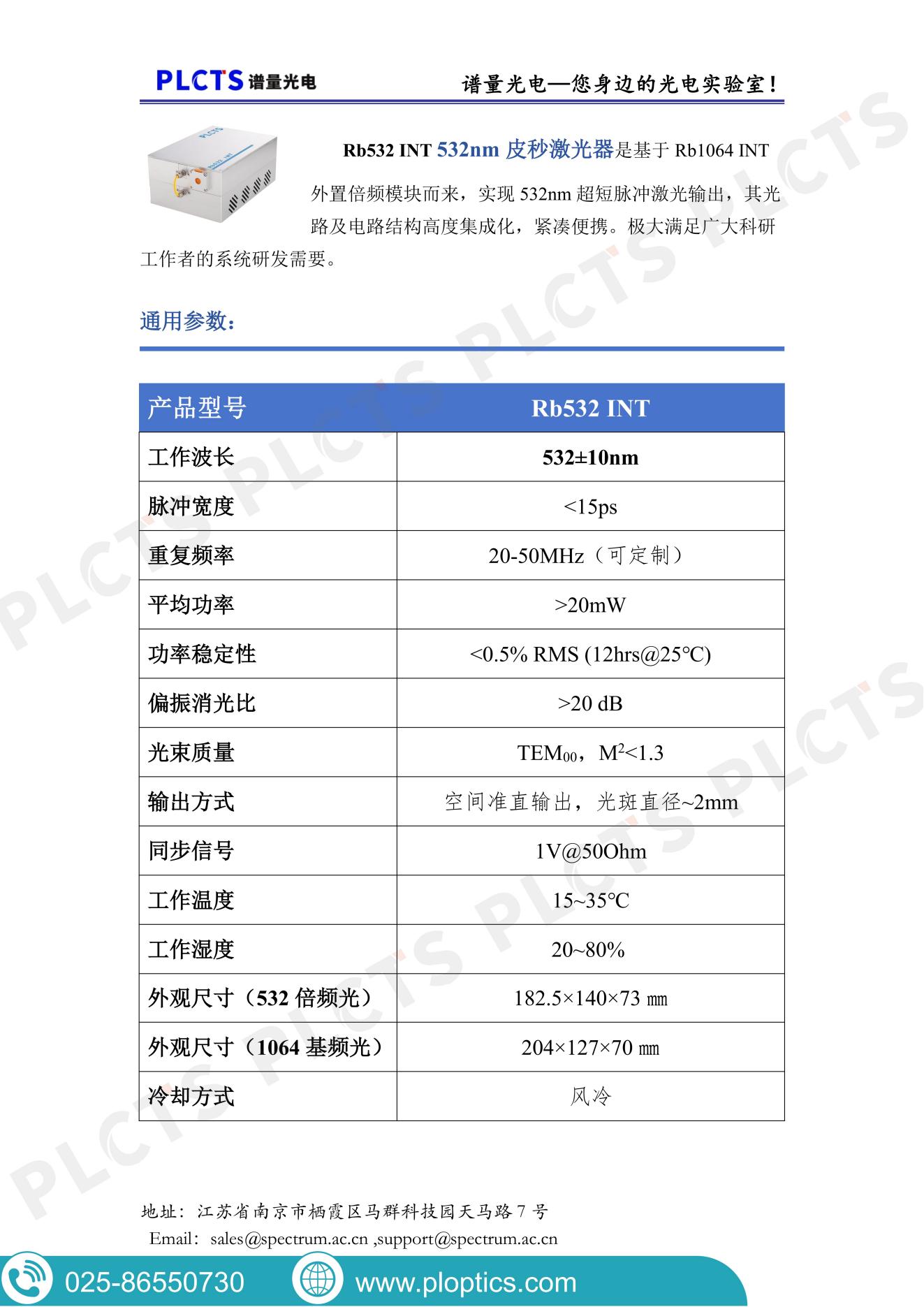 谱量光电Rb532 INT皮秒激光器,下载产品手册,查看参数详情