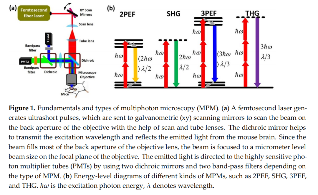 多光子显微成像(包括双光子、三光子激发等)通过超短脉冲激发荧光,实现对活体组织的高分辨成像,已成为神经科学、肿瘤研究等领域的重要工具。