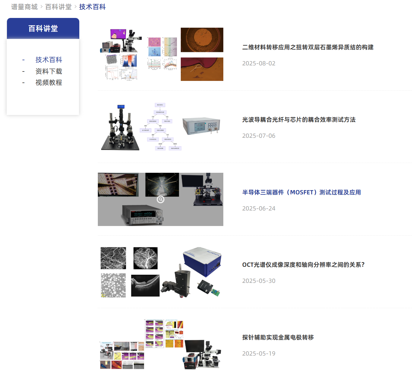 技术部同事会定期在网站顶部百科讲堂——技术百科栏目更新高质量的技术文章,从光电知识的科普,到设备的使用,具体的测试过程都会涉及,欢迎您查阅指正。