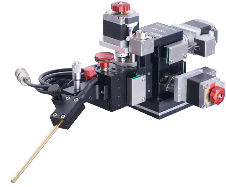 高稳定显微镜+高清相机、精密XYZ(含旋转)位移台、微动探针臂(钨针/改装针,尖端几十纳米—数十微米)。
