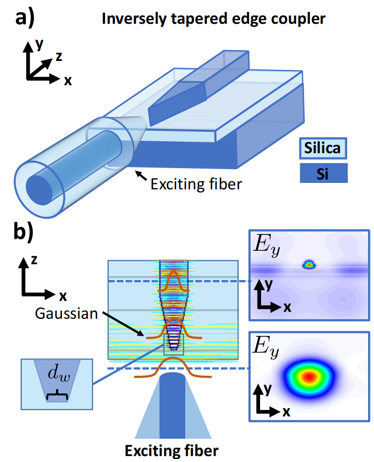 核心思路: 把硅波导前端“削尖”,让光逐渐释放到外部的低折射率包层中,从而“放大”模式尺寸。