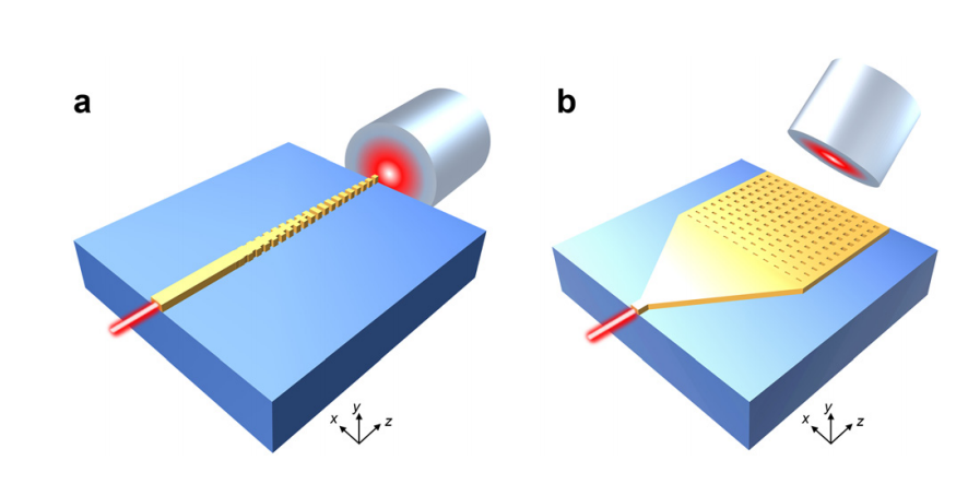 端面(水平)耦合与垂直耦合的典型结构对比示意↑