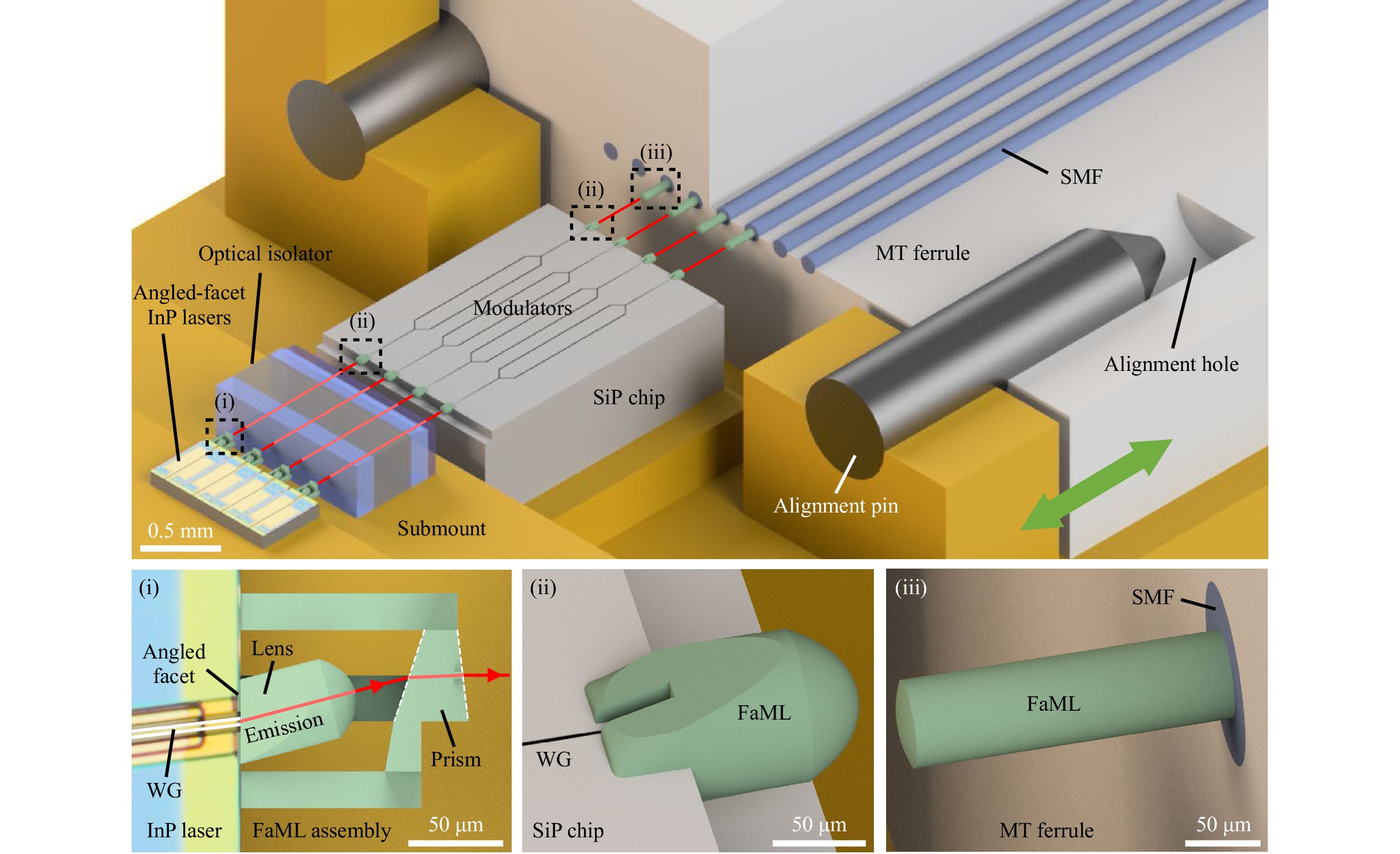 核心思路:从平面结构进化到三维光学结构,在端面或光纤端添加可打印微透镜或自由曲面光波导,显著放宽装配公差。