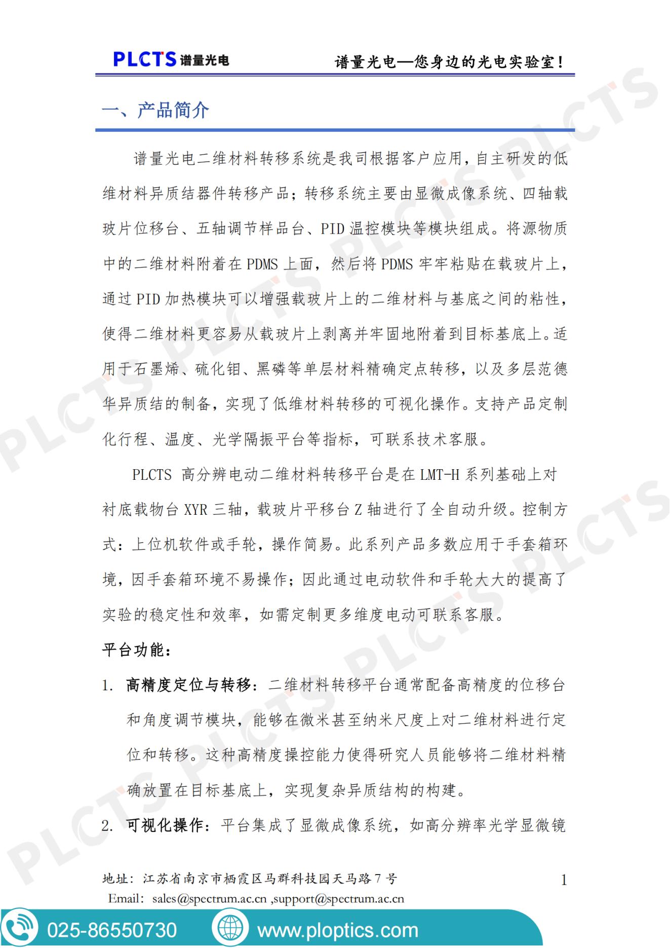 谱量光电提供高分辨电动二维材料转移平台(LET-S系列)产品手册下载,可选配多轴电动控制,集成金相显微镜成像,助力精准材料研究。