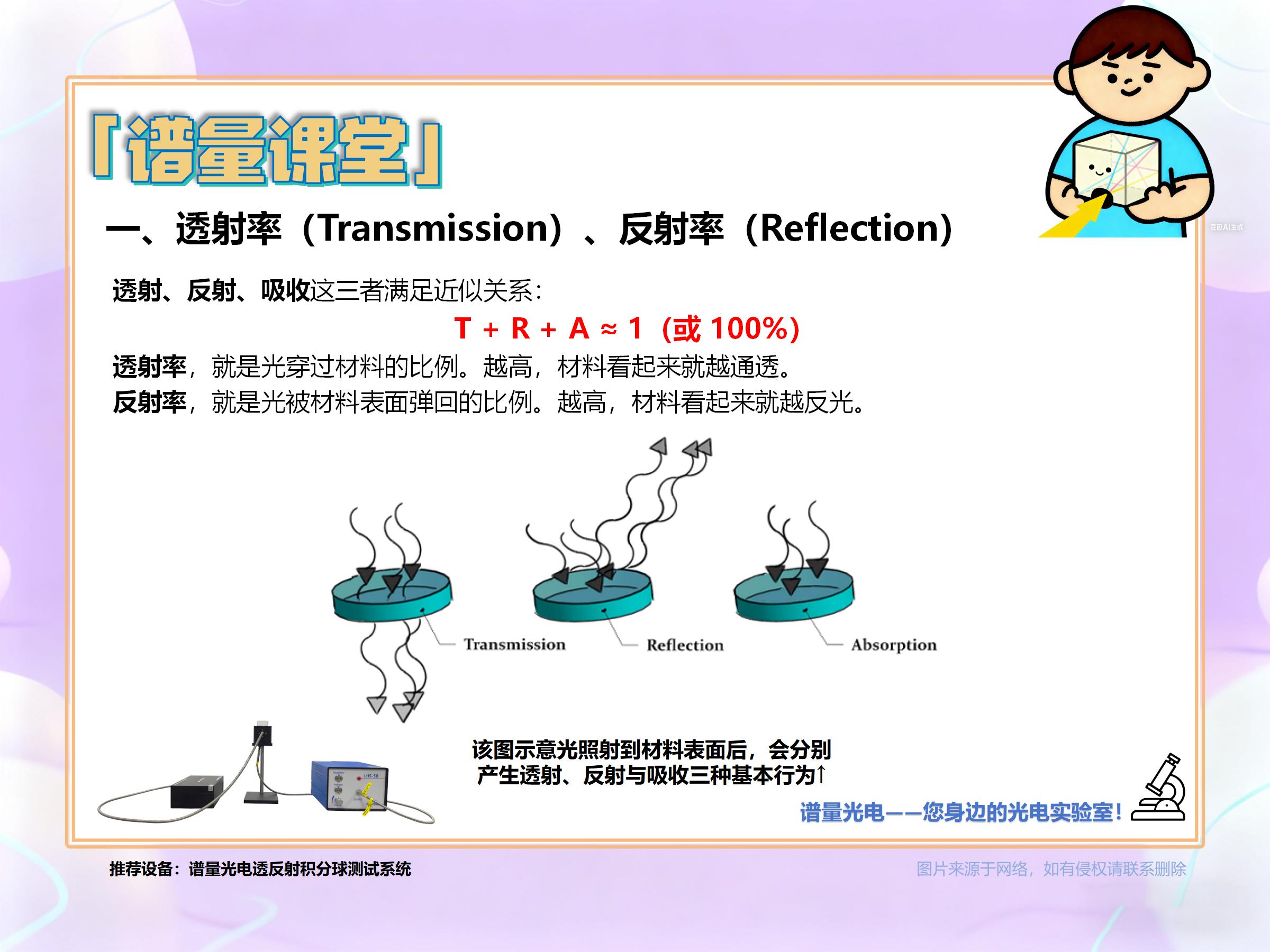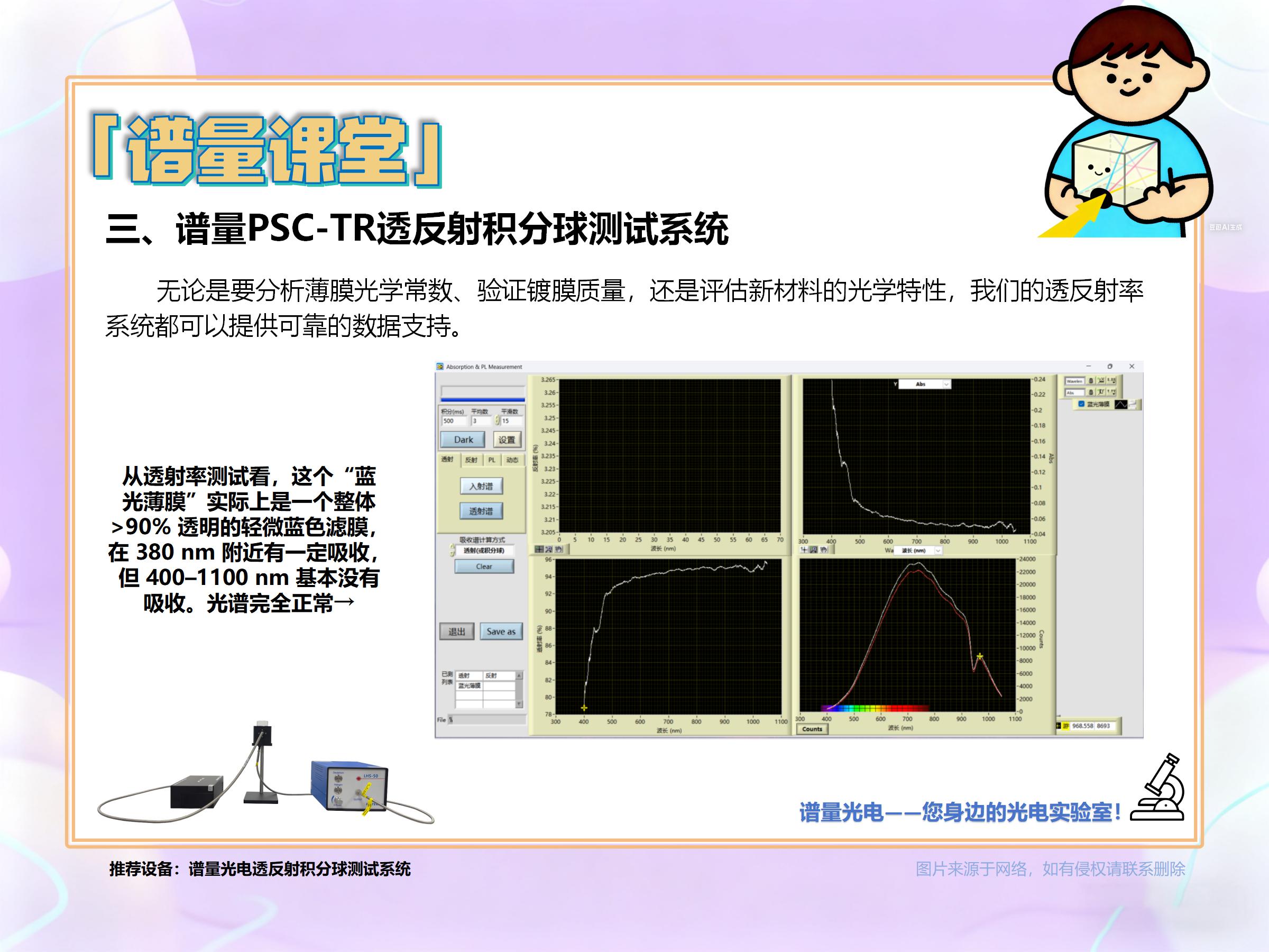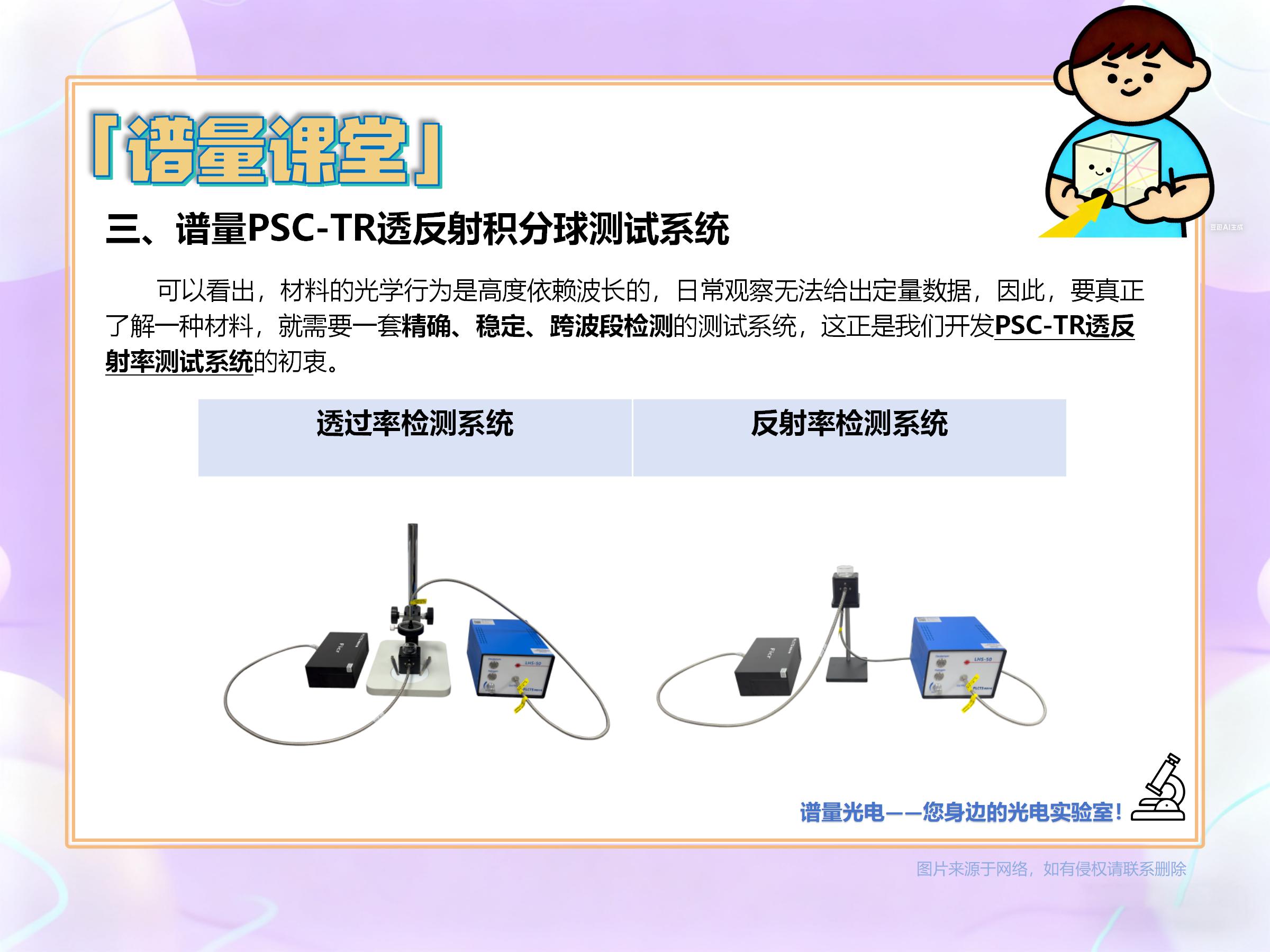 透反率测试系统介绍此视频详细介绍了材料的透射,反射现象、谱量光电PSC-TR系列——透反率测试系统硬件和配套测试软件等
