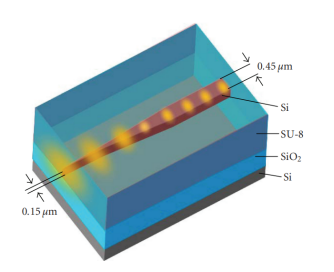 让光纤输出的高斯光斑(大而圆),逐步过渡为芯片内部波导的基模(小而集中)。 然而两者的“模场形态”差异极大: 光纤的模场直径通常为 8–10 µm,分布平滑、扩展较宽; 而硅光波导的有效尺寸仅约 0.5 × 0.22 µm,光被强烈约束在极小区域内。 直接将光纤端面对准波导端面,只能让中心部分耦合进入,大量能量会因模式不匹配而损失。