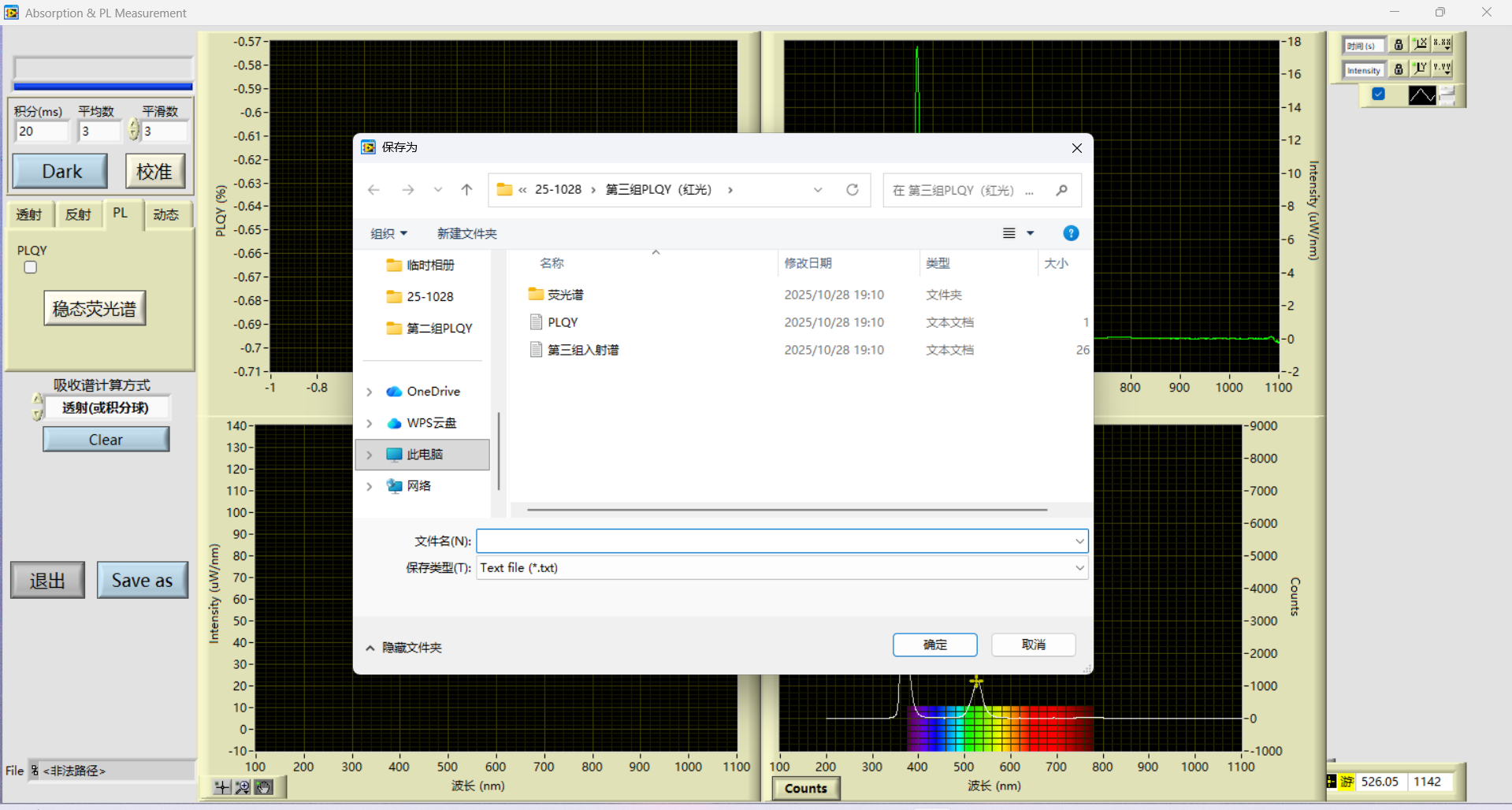 通过软件采集界面截图与导出数据绘制图对比,可以看到导出数据与软件采集曲线在光谱形状、特征峰位置和整体趋势上完全一致,未出现数据缺失或偏差,说明导出数据完整可靠,可直接用于后续分析与绘图。