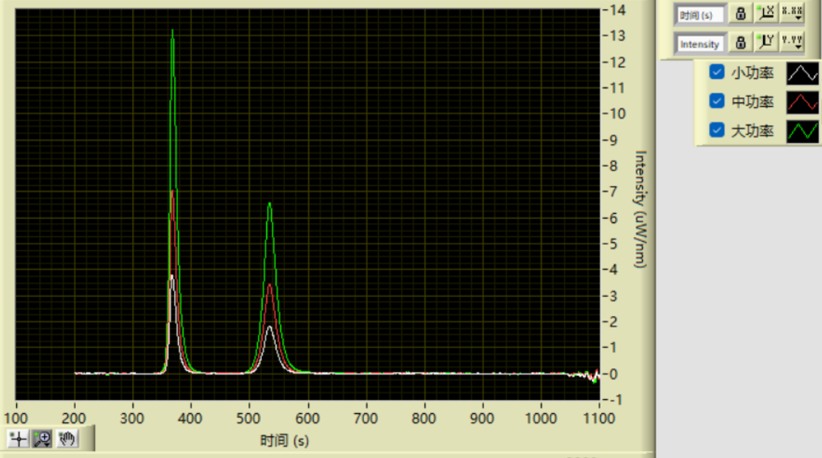 不同光功率,荧光光谱曲线对比图↑