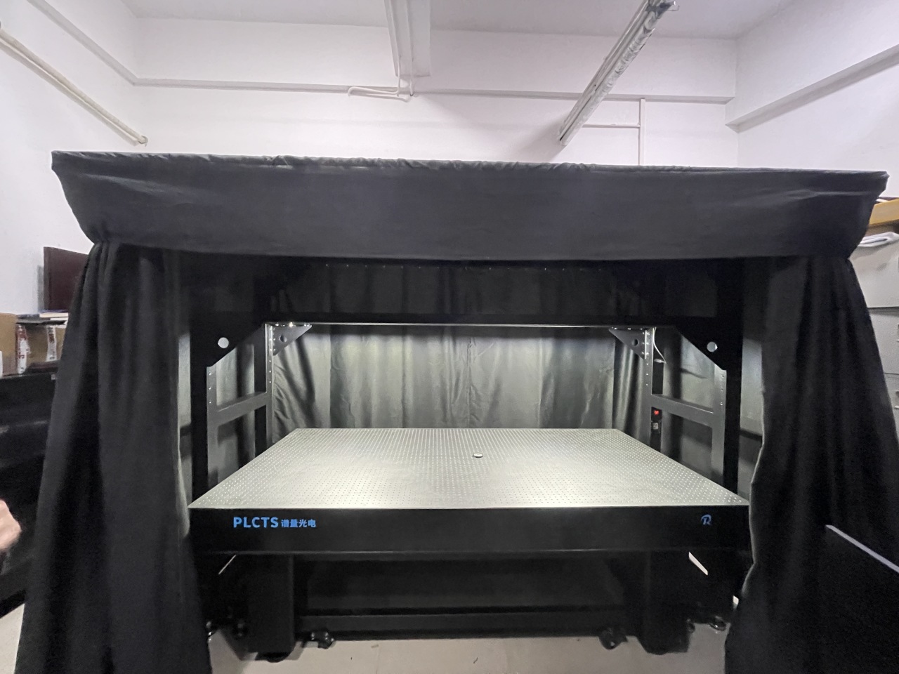 客户常选择搭配标准型仪器架或者铝型材仪器架,以及暗室遮光帘使用,组成隔振光学平台套件