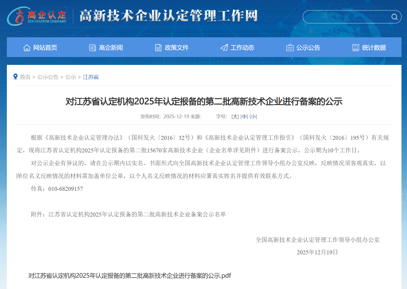 近日,全国高新技术企业认定管理工作领导小组办公室发布《对江苏省认定机构2025年认定报备的第二批高新技术企业进行备案的公示》,南京谱量光电科技有限公司成功通过此次认定!
